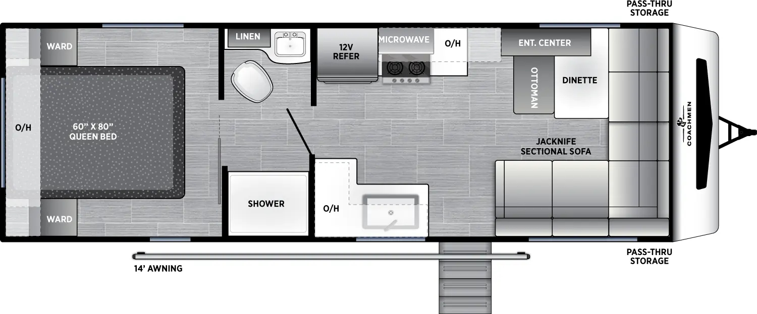 Tags: 249SE, coachmen, Freedom Express, front dinette, No Slide, No slideout, rear bedroom, walk-through bathroom